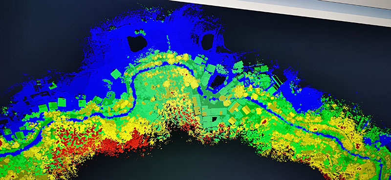 公司綜合運用激光雷達(LiDAR)技術(shù)、傾斜攝影技術(shù)、可視化技術(shù)、數(shù)據(jù)庫技術(shù)為客戶提供真三維平臺。通過傾斜攝影與激光掃描后形成點云數(shù)據(jù),影像數(shù)據(jù)。形成DEM、DOM、DSM數(shù)據(jù)成果,通過修改DSM模型、照相、貼圖、烘焙、模型編號等過程形成高質(zhì)量的三維模型產(chǎn)品